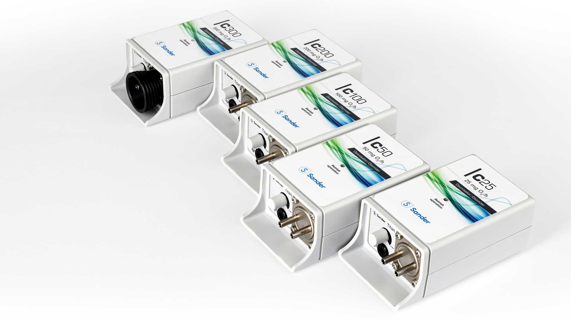 Die Sander Ozonisatoren der Baureihe Certizon bieten diverse Leistungsstufen von 25 bis 300 mg/h an. Alle Certizon Geräte sind mit einem Potentiometer (Drehknopf) für die einfache und stufenlose Einstellung ausgerüstet. Die kompakte Ausführung ist leicht und kann in beliebiger Lage (Tisch- oder Wandmontage) aufgebaut und in Betrieb genommen werden. Das Ozonelement kann bei Bedarf sehr einfach gereinigt werden.